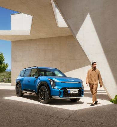 Wie der vielfach preisgekrönte EV6 (Europas Car of the Year 2022)  wurde der EV9 nach der neuen Kia-Designphilosophie „Opposites United“ (Vereinte Gegensätze) gestaltet. Inspiriert von der Natur und der Moderne, beeindruckt der EV9 durch ein unverwechselbares Profil in Verbindung mit einer futuristischen Linienführung. Aus jeder Perspektive einzigartig. Auf der Straße wie im Gelände.
